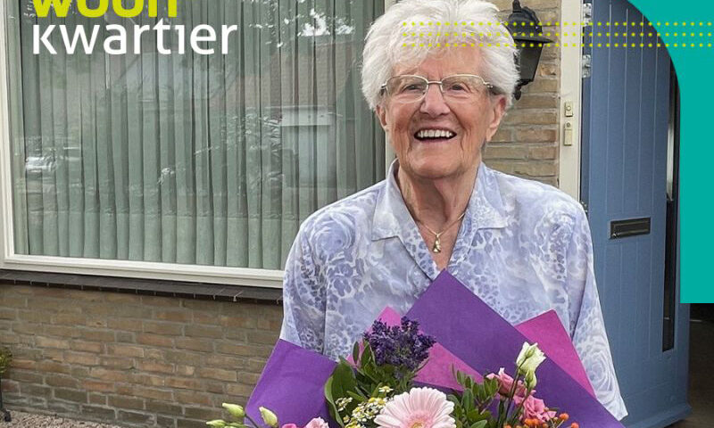 Begin september ging Woonkwartier met een bos bloemen langs bij de oudste huurder van de gemeente Halderberge. Daarmee is zij tegelijk het oudste lid uit de gemeente Halderberge van HV Fijn Wonen.